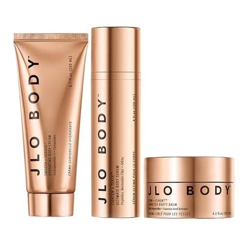 JLO BEAUTY The Ultimate Body Trio | Includes 4.2 fl oz Booty Balm, 4 fl oz Body Serum & 6.7 fl oz Body Cream | Brightens, & Firms for Smooth Skin